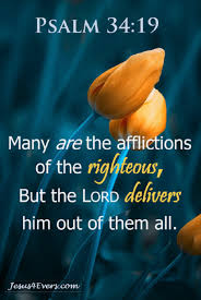 Many are the afflictions of the righteous, but the Lord delivers him out of them all. Psalm 34:19