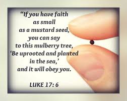 So the Lord said, “If you have faith as a mustard seed, you can say to this mulberry tree, ‘Be pulled up by the roots and be planted in the sea,’ and it would obey you.” Luke 17:6