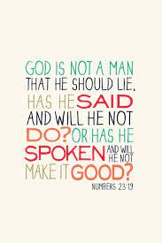 God is not like people. He tells no lies. He is not like humans. He doesn’t change his mind. When he says something, he does it. When he makes a promise, he keeps it. Numbers 23:19 GW