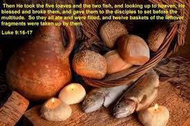Then He took the five loaves and the two fish, and looking up to heaven, He blessed them, and broke them, and kept giving them to the disciples to set before the people. Luke 9:16 NASB