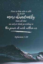 Now to Him who is able to do exceedingly abundantly above all that we ask or think, according to the power that works in us, Him who is able. Ephesians 3:20