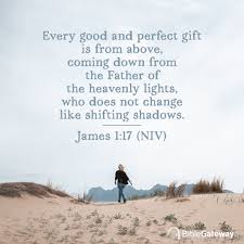 Every gift God freely gives us is good and perfect, streaming down from the Father of lights, who shines from the heavens with no hidden shadow or darkness and is never subject to change. James 1:17 TPT