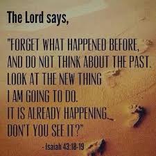 “Stop dwelling on the past. Don’t even remember these former things. I am doing something brand new, something unheard of. Even now it sprouts and grows and matures. Don’t you perceive it? I will make a way in the wilderness and open up flowing streams in the desert.” Isaiah 43:18-19 TPT