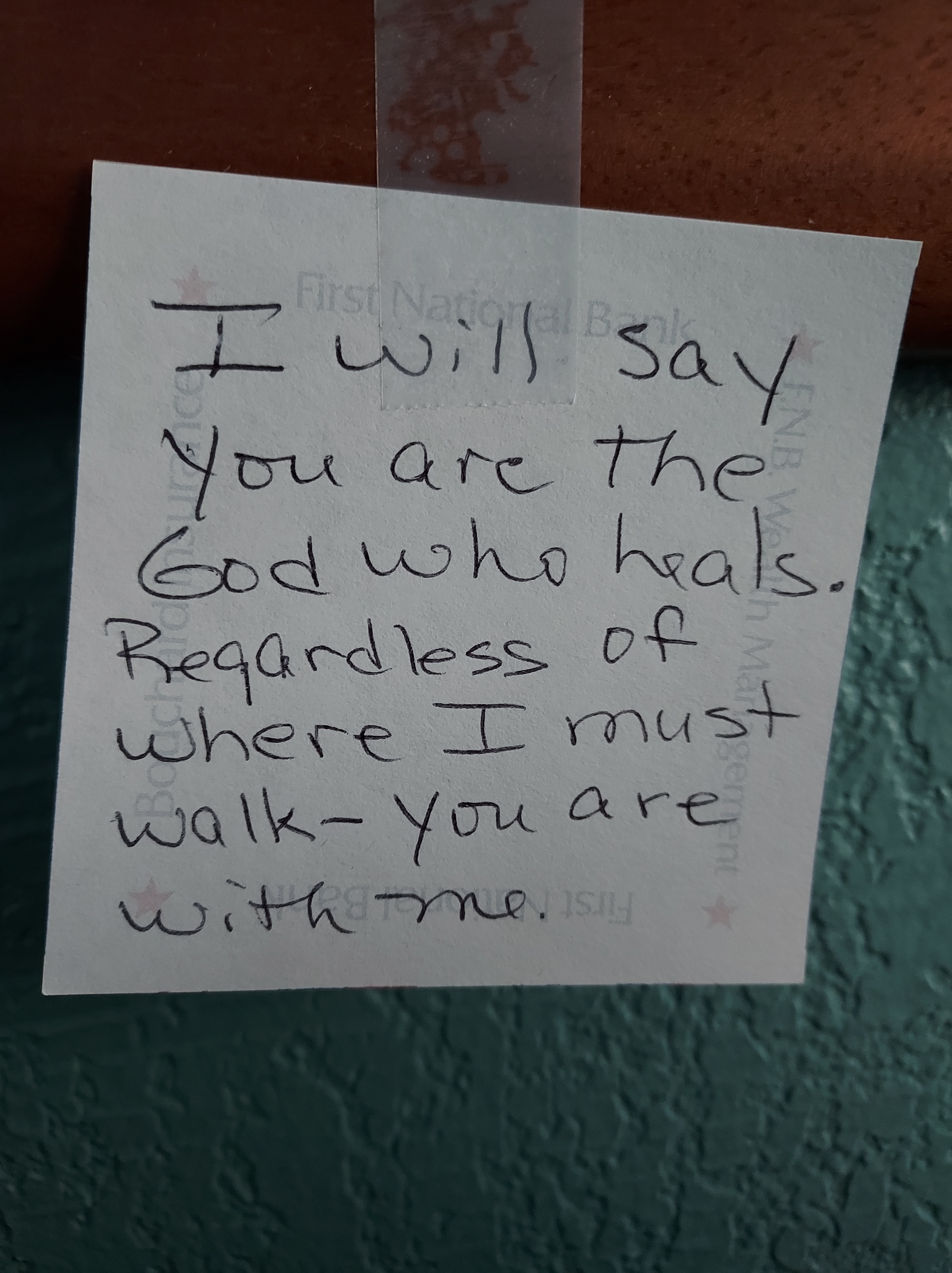 That is one of the reasons I believe it’s necessary to write it down so that I have it before my face when I need it. I don’t need to talk about it, I just need to know He is with me, taking me through it one step at a time.