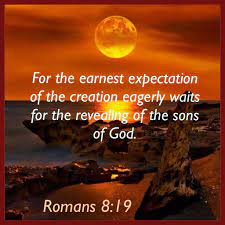 Verses 19-24. For all creation is waiting eagerly for that future day when God will reveal who his children really are (I believe we are living in that day). All creation anticipates the day when it will join God’s children in glorious freedom from death and decay. For we know that all creation has been groaning as in the pains of childbirth right up to the present time. And even we Christians, although we have the Holy Spirit within us as a foretaste of future glory, also groan to be released from pain and suffering. We too wait anxiously for that day when God will give us our full rights as his children, including the new bodies he has promised us. Now that we are saved, we eagerly look forward to this freedom. For if you already have something, you don’t need to hope for it. But if we look forward to something we don’t have yet, we must wait patiently and confidently.
