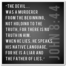 You are of your father the devil, and the desires of your father you want to do. He was a murderer from the beginning, and does not stand in the truth, because there is no truth in him. When he speaks a lie, he speaks from his own resources, for he is a liar and the father of it. John 8:44