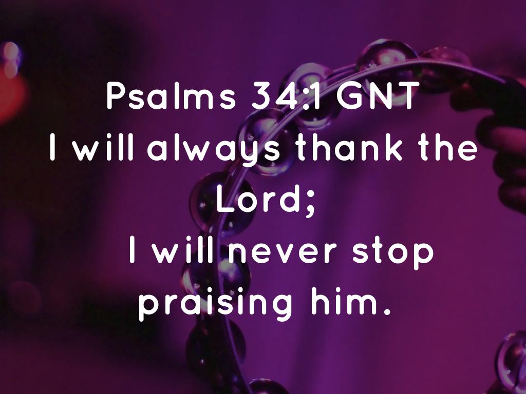 I will always thank the Lord; I will never stop praising him. I will praise him for what he has done; may all who are oppressed listen and be glad! Proclaim with me the Lord’s greatness; let us praise his name together! Psalm 34:1-3