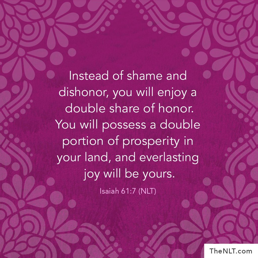 Instead of shame and dishonor, you will enjoy a double share of honor. You will possess a double portion of prosperity in your land, and everlasting joy will be yours. “For I, the Lord, love justice. I hate robbery and wrongdoing. I will faithfully reward my people for their suffering and make an everlasting covenant with them.” Isaiah 61:7-8 NLT