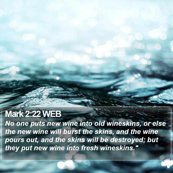 “And no one puts new wine into old wineskins; or else the new wine bursts the wineskins, the wine is spilled, and the wineskins are ruined. But new wine must be put into new wineskins.” Mark 2:22